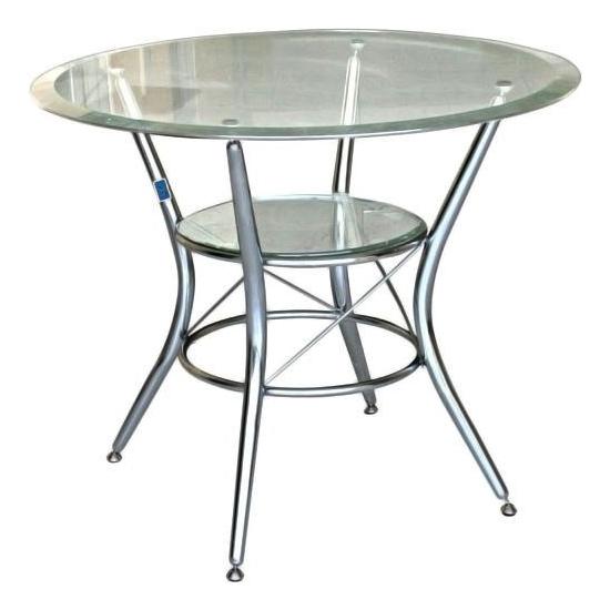 Bàn mặt kính tròn, khung thép có ngăn bàn kính.