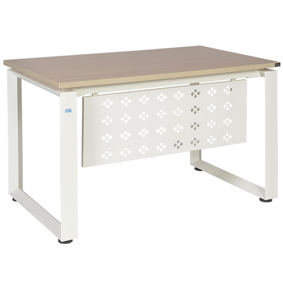 Bàn làm việc khung thép tam giác mặt gỗ Melamine. Có yếm tôn trang trí. (Giá chưa bao gồm hộc, bàn phím, CPU)