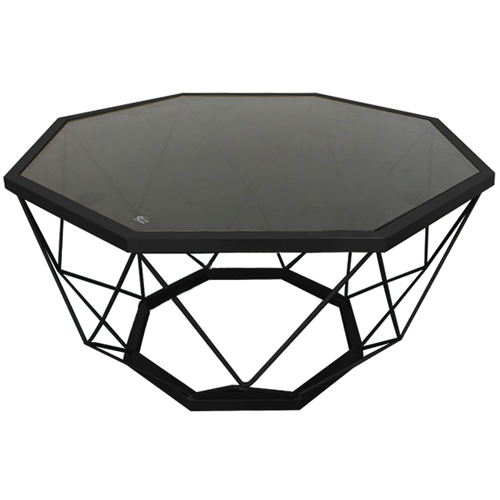 Bàn sofa khung thép ống vuông 20x20 kết hợp bằng thép đặc Ø6 sơn tĩnh điện màu đen nhám. Mặt bàn kính cường lực màu xanh đen hoặc nâu trà.