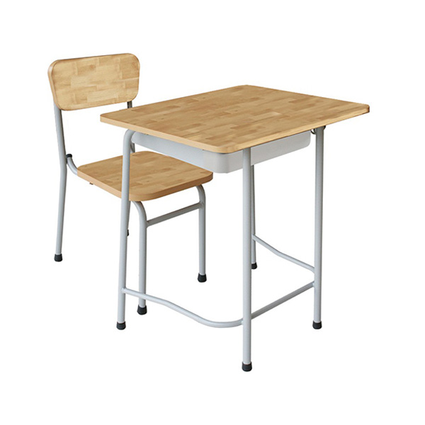 Bàn ghế học sinh khung thép sơn tĩnh điện, mặt gỗ tự nhiên được phủ một lớp sơn trong suốt để bảo vệ bề mặt và giữ được mầu sắc nguyên bản của gỗ.