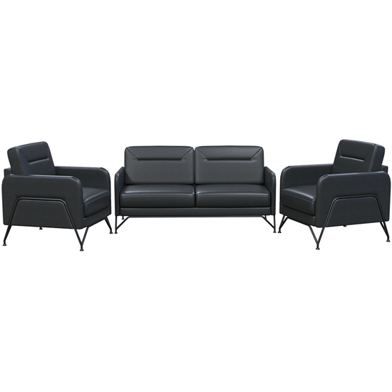 Bộ ghế sofa văn phòng phong cách hiện đại, đệm tựa bọc DA, da công nghiệp hoặc PVC. Khung chân thép sơn đen.