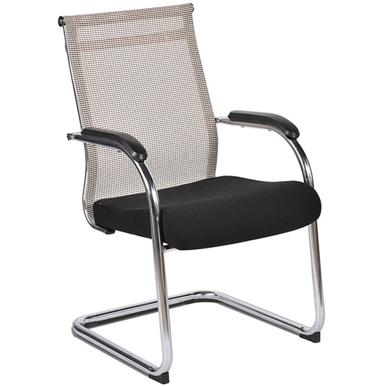 Ghế họp khung thép mạ ốp tay nhựa, tựa bọc vải lưới chịu lực, đệm mút bọc vải lưới xốp.