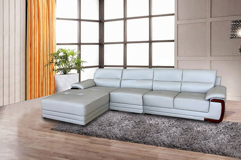 Ghế sofa góc cao cấp bọc da thật mặt tiếp xúc với người sử dụng hoặc bọc PVC chất lượng cao. Ghế được trang trí ốp gỗ tự nhiên sơn phủ PU.