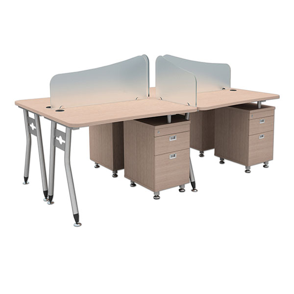 Modul 4 chỗ, mặt bàn chữ nhật chân sắt, vách ngăn kính.