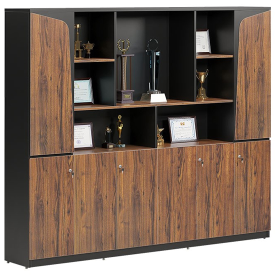Tủ lãnh đạo V6 chất liệu gỗ công nghiệp màu M6 và M26, cánh tủ cao có ốp trang trí