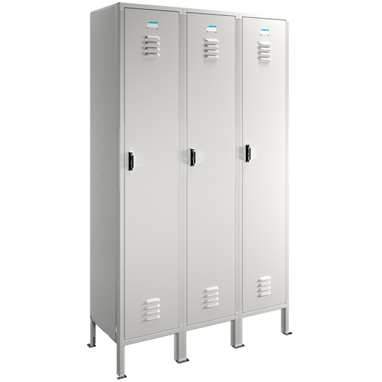 Tủ sắt sơn tĩnh điện màu trắng ngà. Tủ có 3 khoang cánh mở, bên trong mỗi khoang có 1 đợt cố định và 3 móc treo áo đơn, 1 móc treo áo đôi. Cánh sử dụng tay nắm cao cấp kèm hệ thống thanh khóa tự sập khi đóng.
