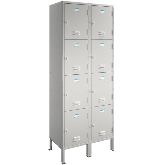 Tủ sắt sơn tĩnh điện màu trắng ngà. Tủ có 8 khoang cánh mở. Trên mỗi cánh có 1 tai khóa móc.