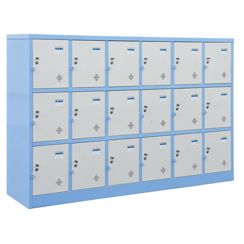 Tủ sắt sơn tĩnh điện 18 khoang cánh mở, kích thước phù hợp cho đối tượng học sinh mẫu giáo, tiểu học. Trên mỗi cánh có 1 khóa locker và 1 núm tay nắm.