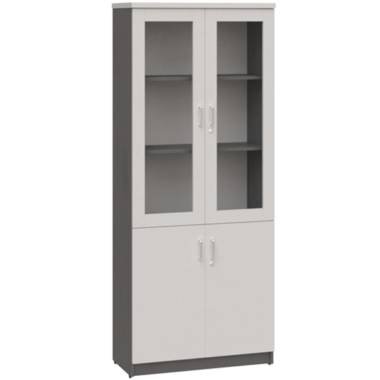 Tủ tài liệu 2 buồng gỗ Melamine, phía trên là 2 khoang cánh kính để tài liệu, phía dưới là hai khoang cánh mở.