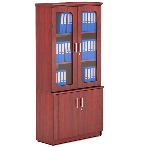 Tủ tài liệu 2 buồng, phía trên là 2 khoang cánh kính để tài liệu, phía dưới là hai khoang cánh mở.